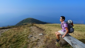 Au détour du sentier, nous apercevons le Monte Lema, un peu perdu dans la brume matinale.