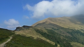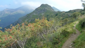Le sentier coupe le flanc de la montagne. Nous resterons quelques mètres au-dessous de la crête.