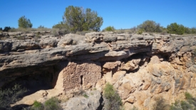 Ces bâtiments furent érigés par les Southern Sinagua, dont je vous ai déjà parlé dans mon billet précédent. Imaginez la surprise des premiers individus qui trouvèrent cet oasis au milieu du désert : une véritable manne. Les Sinagua apprirent les technique d’irrigation d’une autre tribu, les Hohokams, qui pratiquaient depuis très longtemps la culture irriguée. Deux cents Sinagua se seraient ainsi installés au bord du Wet Beaver Creek (celui-là même qui traverse le V-Bar-V) entre 900 et 1’400 après J.-C.