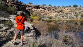 Nous quittons le V-Bar-V Heritage Site et 30 minutes plus tard, nous sommes au Montezuma Well. Le parking est encombré et deux school bus jaunes sont garés un peu à l’écart. Nul doute qu’en cette semaine de Thanksgiving, nous ne serons pas les seuls à visiter les parc ou monuments nationaux.