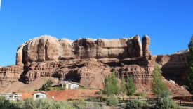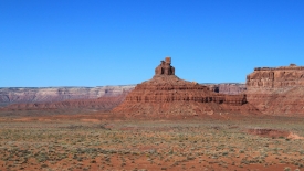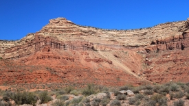 Le Moki Dugway passe par là, à flanc de cette montagne. Moi je ne vois rien, mais oui, il y a bien une piste quelque part. La preuve, suivez ce lien.