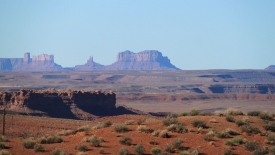 Nous quittons Monument Valley vers 17h. Nous en avons pleins les yeux et également plein les narines (ça, c’est pour la poussière). Stefano renonce au Moki Dugway. Nous rentrerons par Mexican Hat et Bluff.