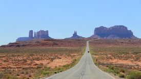 Puisqu’il est encore tôt, Stefano me demande si je veux pousser vers Monument Valley, histoire de faire la traditionnelle photo de la route plongeant vers les buttes ! Oh Yes!