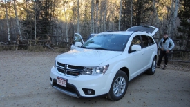 Comme hier, une voiture nous a précédés. C’est un pick-up Ford F-150, qui nous avons vu à plusieurs reprises en ville, peut-être même sur le parking de l’hôtel.