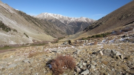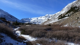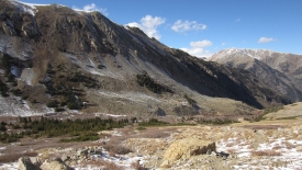 Au fond, un cirque et, légèrement décentrée sur la gauche, le Elkhead Pass.