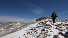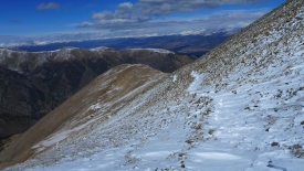 Malgré l’enneigement, Stefano devine le sentier, ou plutôt l’absence de sentier. Cette montée me rappelle furieusement la montée de Starlight Arch, il y a quelques années.
