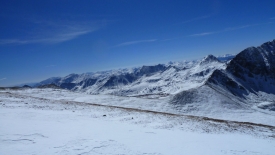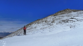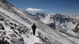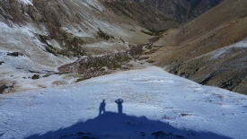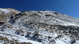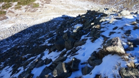 La première partie de la montée est très difficile. En effet, la pente est raide et nous progressons sur des grosses pierres, peu stables et parfois recouvertes de neige.