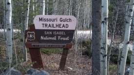 C’est une dirty road de catégorie 1. Elle est toute lisse et il ne lui manque que le goudron pour remonter dans la catégorie paved road. Ce qui est bien, car nous avons 7.5 miles à couvrir avant d’attendre le Missouri Gulch Trail Head, le point de départ de notre ascension.