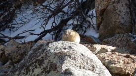 Un pika se chauffe au soleil. Un instant, nous nous sentons proches de cet animal tout mignon. Nous nous arrêtons, le regardons et profitons avec délice des mêmes rayons de soleil.
