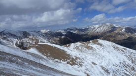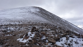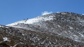 Vers le ridge venteux, la pente très raide à la montée l’est tout aussi à la descente et nous bénissons à plusieurs reprises notre fournisseur de bâtons Leki.