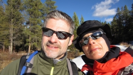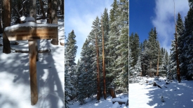 Après environ 50 minutes de marche et 220 mètres de dénivelé (c’est donc super-facile), nous arrivons à la jonction du sentier pour le Mount Massive (1). Non loin, quelques arbres morts et une petite pensée pour ma sœurette, AI.