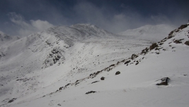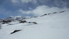 Nous avons perdu énormément de temps à zigzaguer pour éviter la neige accumulée. Le vent a considérablement ralenti notre marche en nous contraignant à marcher courbés, à la recherche de la moindre exposition possible.