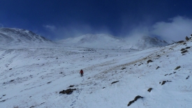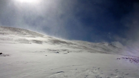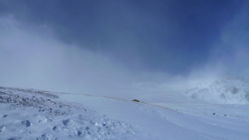 Le vent commence à souffler. Un vent violent qui emmène avec lui des milliers de cristaux de neige. Autant de petites piques qui tentent, à chaque rafale, de lacérer nos visages. Certaines fois, des rafales particulièrement vindicatives nous font tituber.