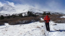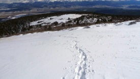 Nous cherchons les passages où la profondeur de la neige accumulée par le vent ne dépasse pas les chevilles.
