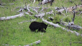 Nous remontons donc à Mammoth Hot Springs. En chemin, un troupeau de voitures arrêtées sur la route, sur les bas-côtés. Une vraie anarchie. La raison ? Un ours brun, qui broute tranquillement.