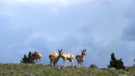 Et enfin, encore un peu plus loin, un troupeau de pronghorns.