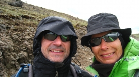 Sous la pluie (c’est mieux que la neige), lors de la descente. Nous sommes tout simplement heureux !