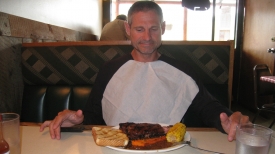 SMS envoyés, courses faites. Stefano déniche l’adresse d’un restaurant où nous pourrons dîner convenablement, le Raven Grill. Il est 17h30 mais notre devise étant Eat when you can, sleep when you can, à 17h45 nous sommes devant un bon steak (12 oz. pour moi et 16 oz. pour Stefano).