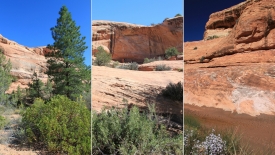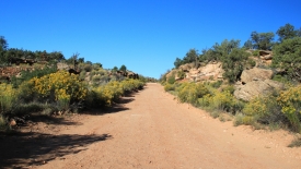 Nous reprenons notre exploration, cette fois, dans le lit du wash, envahi momentanément par la végétation.