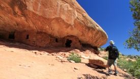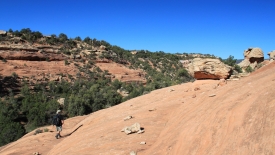 Puisqu’il est tôt, nous décidons de partir faire un tour du côté des Butler Wash Ruins. Ce sera le dernier effort de la journée, avant le dîner ! Il nous faut marcher moins de 1 mile sur du slick rock pour admirer ces ruines.