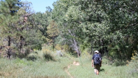 Le chemin du retour se fait plutôt en suivant le wash, ou parfois au travers d’étendues recouvertes de hautes herbes.