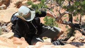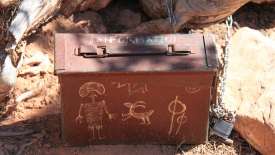 À proximité, une boîte, ou ammo box comme on l’appelle ici, laissée par les rangers et contenant de précieuses informations sur le site et les indiens Anasazi en général.