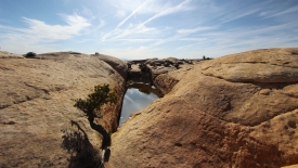 Ces blocs de rocher témoignent de la mesa qui peu à peu se rétrécit. Certains de ces blocs mesurent bien dix mètres de large sur dix à quinze mètres de hauteur. Par endroit, nous enjambons des fissures dont nous ne voyons pas le fond. Scary, je vous dis.