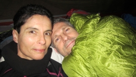 A 19 heures, nous sommes au chaud, dans la tente, dans les duvets que nous avons réunis pour n’en faire qu’un.