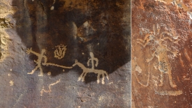 Là, nous sommes en présence de dessins plus récents, car représentant des chevaux. Les chevaux furent introduits par les espagnols durant le 16ème siècle.