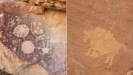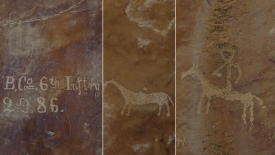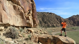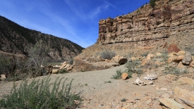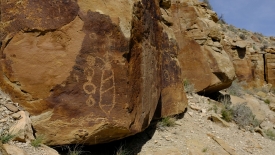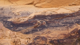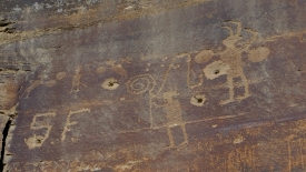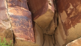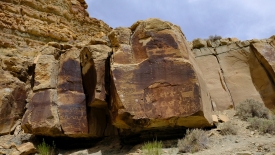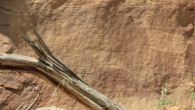 D’abord une petite chèvre, au bas du bloc de rochers, et des initiales beaucoup plus récente. Pour la petite histoire, ce canyon a été longtemps une voie de communication entre Fort Duchesne et la ville de Price où passait le train. Bien avant, au début du 19ème siècle, les trappeurs passaient par ce canyon. La seconde expédition consacrée à l’exploration du Colorado et menée par John Wesley Powell, campa près de l’entrée du canyon, en 1871.