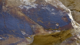 Nous revenons à la voiture et observons les alentours. Là encore, les pans de falaise ont servi de table à dessin.