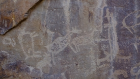 Des chèvres et une forme anthropomorphique. La diversité des représentations de bêtes et d’hommes est fascinante. Ici les formes sont évidées et les chèvres plutôt arrondies.
