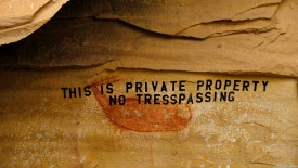 Nous suivons la falaise sur la droite sur quelques centaines de mètres mais le sentier se perd dans les buissons de Sagebrush. Nous revenons sur nos pas et nous résignons à franchir la clôture afin de suivre le sentier qui part cette fois sur la gauche. Franchir la clôture, en soit, est aisé : il s’agit de se glisser entre le premier piquet et la falaise. Le plus difficile est plutôt de faire fi de l’interdiction : s’il y a clôture, c’est justement pour interdire un accès.