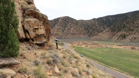 En conséquence, nous nous arrêtons près d’un panneau Nine Mile Canyon, comme de parfaits touristes que nous sommes depuis deux jours, pour remédier à notre manquement.