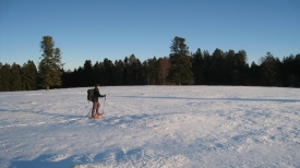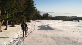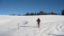 Nous nous disons que c’est une journée idéale pour tester nos raquettes. Nous ne risquons pas de trouver beaucoup de monde sur les chemins.