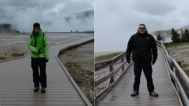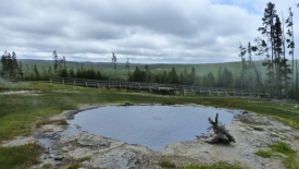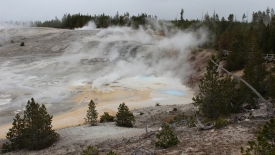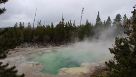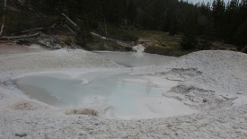 Malgré le froid mordant et le vent méchant, nous passons près de 3 heures ici, refaisant même le tour de Porcelain Basin, pensant naïvement que le soleil allait se décider à nous gratifier de quelques rayons.