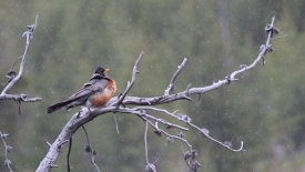 Un oiseau tout ébouriffé sous la neige !
