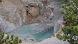 Le mauvais temps ne nous empêche pas de jouer aux parfaits touristes. Nous profitons de chaque parking pour aller découvrir l’eau chaude dans tous ses états.