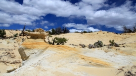 Derrière cette micro butte, nous retrouvons de roches jaune-oranges.