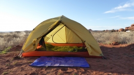 En passant devant l’entrée du Needles Outpost, juste à la sortie du parc, Stefano me dit : on essaie ? Pourquoi pas… même si leur site web affichait complet il y a quelques jours, peut-être que là, un bambin a attrapé la rubéole (je rappelle que la rubéole est une maladie infantile bénigne et qu’espérer qu’une fillette l’attrape ne peut être que bénéfique pour ses maternités futures) obligeant ses parents à rentrer à la maison.