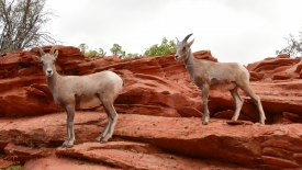Deux bighorn sheeps nous souhaitent la bienvenue en Utah. Nous n’en demandions pas tant. Nous, nous ne demandons que du beau temps pour les 6 prochains jours.