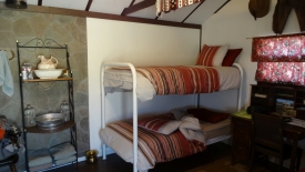 Stefano m’avait promis du rustique et là, je suis servie : pas d’eau courante, les toilettes et la douche dehors. La douche est constituée d’un seau que le soleil, dans son infinie bonté, est censé chauffer.