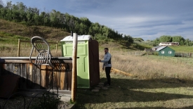 Nous papotons presque une heure avec Mike, qui nous raconte son parcours et nous rappelle de ne jamais nous déplacer hors de la cabine sans du Bear deterrent. Non loin, des buissons regorgent de baies que les grizzlis adorent, paraît-il. Hum, nous nous réjouissons déjà de nos pipis nocturnes !