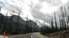 Nous arrivons à proximité de Saint-Mary Lake et ne pouvons que constater les dégâts commis par les feux. Il y a quelques jours encore, la route était fermée, les feux étant encore actifs.