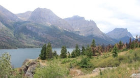 Saint-Mary Lake, côté sud-est. Dans l’ordre ou le désordre : Little Chief Mountain, Mahtotopa Mountain et Red Eagle Mountain.