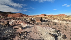 Magnifique journée passée à explorer la section nord du parc. Partis du Painted Desert Inn, nous descendons dans la plaine et passons notre journée à explorer, hors des sentiers battus, les merveilles que recèle Painted Desert Wilderness Area, parmi lesquelles Onyx Bridge.
