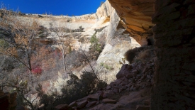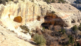 Nous revenons dans le lit du wash et partons à l’est explorer les autres alcôves orientées au sud.