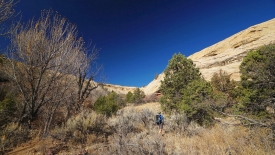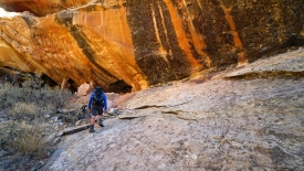 L’approche est aisée lorsque le lit du wash est constitué de slick rock, beaucoup moins lorsque la végétation a repris le dessus.