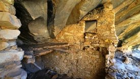 Globalement les ruines du site de Over and Under ne sont pas dans un état exceptionnel. À part ce petit grenier, encore entier malgré une brèche sur la partie supérieure, il ne reste que des pans de murs un peu bancals.