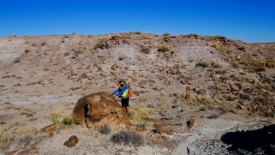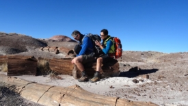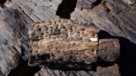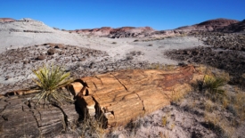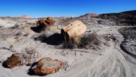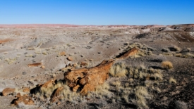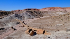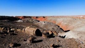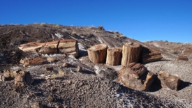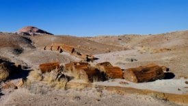 Les troncs pétrifiés sont éparpillés. Certes, ils sont moins « beaux » que ceux admirés hier. Les couleurs sont plus ternes. Mais un tronc pétrifié reste un tronc pétrifié et je vous rappelle que ces troncs étaient debout il y a 210 millions d’années. Au moins.